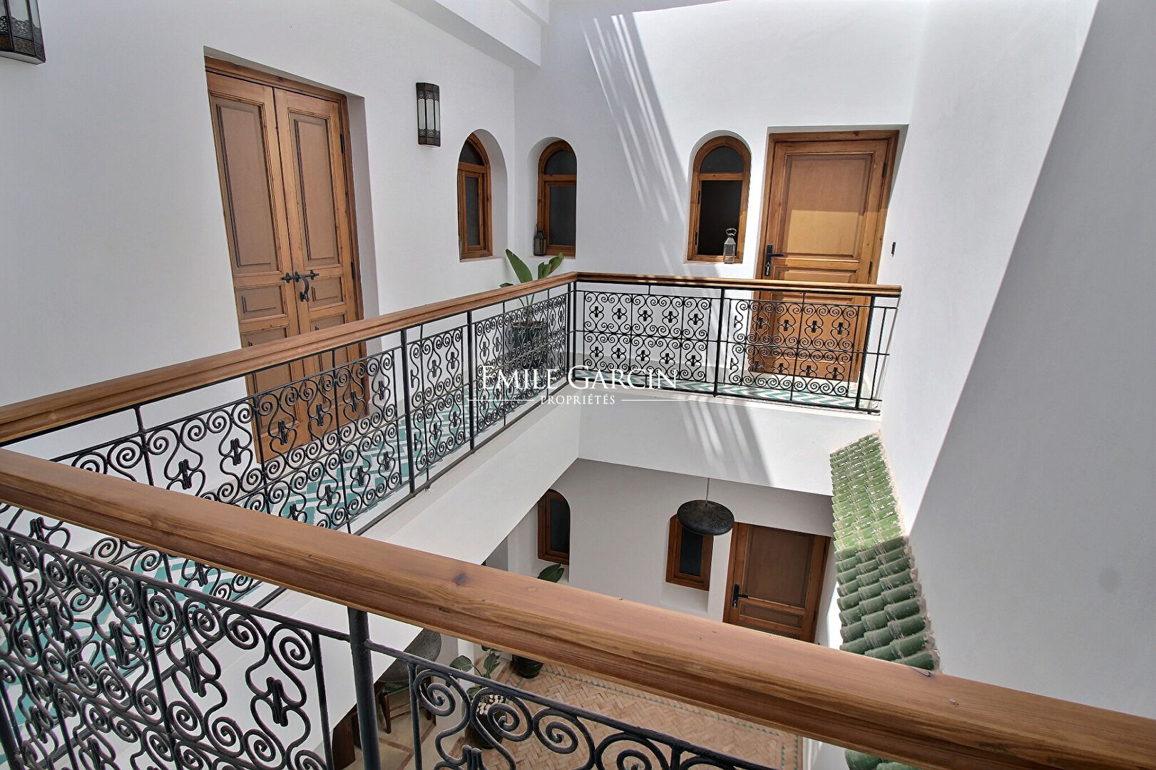 Located in the heart of the highly sought-after Bab Doukkala district, this riad presents approximately 100 sq.m of living area on a footprint of 64 sq.m. The property comprises a patio with a plunge pool, a bhou, a fully equipped kitchen, three suites and a beautiful terrace. Located just a few minutes' walk from the Majorelle Gardens and the souks, this fully renovated riad is a great investment opportunity. It would make the perfect pied-à-terre or could easily be rented out to holidaymakers.