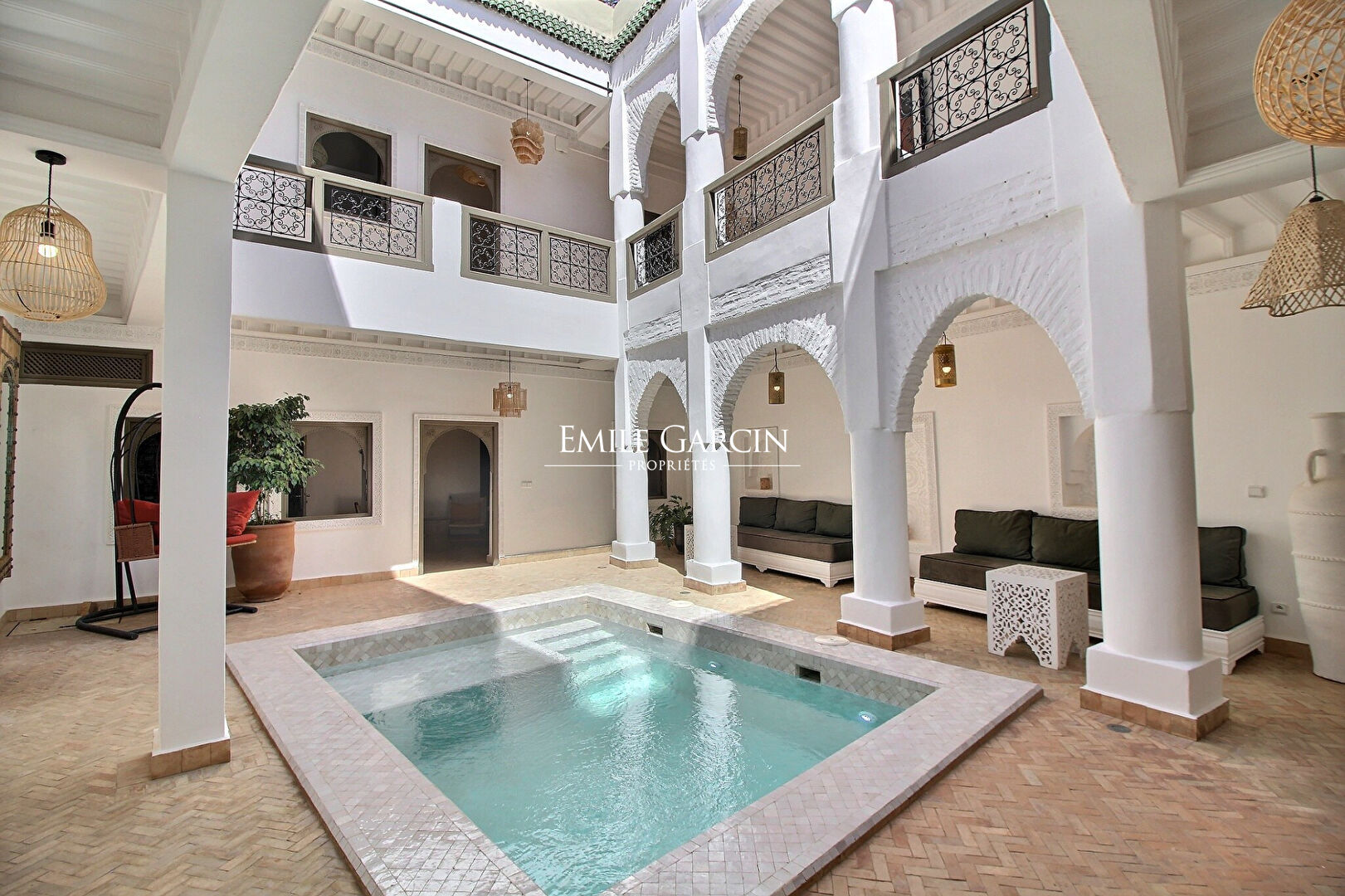 Located in one of the most sought-after areas of the medina, this riad presents approximately 250 sq.m of living area on a 165 sq.m footprint. It comprises five ensuite bedrooms, a living room with a fireplace, a large patio with a plunge pool, a kitchen, and a large terrace with dining area and hot tub offering stunning views of the Atlas Mountains. Fully renovated by its current owner, the riad has been furnished and decorated and is delivered in turnkey condition. Thanks to its prime location and excellent facilities, it would make the perfect guest house for holidaymakers.