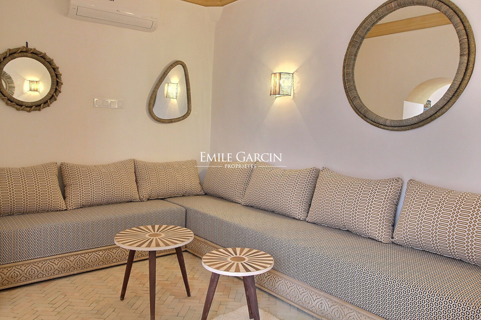 Idyllically located and characterful riad presenting approximately 200 sq.m of living area on a footprint of 110 sq.m. The property consists of a covered patio with electronic retractable roof, a living room, a dining room, a kitchen backing onto the patio, five ensuite bedrooms and a utility room. The terrace is equipped with a plunge pool, BBQ facilities and a dining/relaxation area. The location is just a short walk from the Place des Ferblantiers and the Bahia Palace, and there is a secure car park within a few metres. This brand new riad would make the perfect pied-à-terre or a high-yield rental investment.